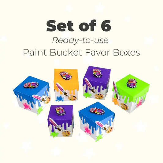 Paint Bucket Favor Boxes – Personalized Art Theme Candy Holders, Kids Painting Party Favors (Set of 6)