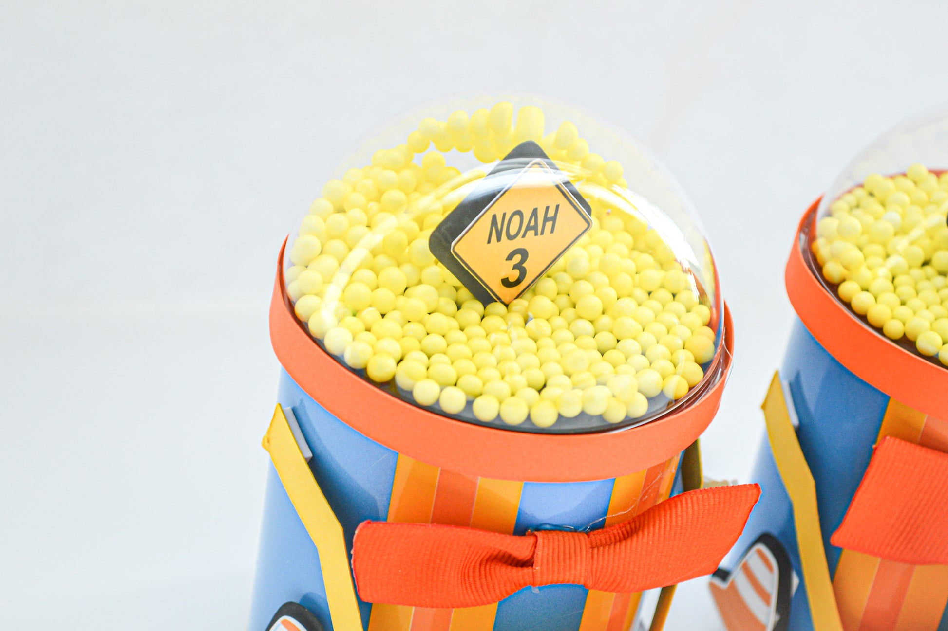 Build the perfect party with our Blippi-inspired construction chip cans! Bright, fun, and personalized—these snack favors double as table décor for your little builder’s big day.