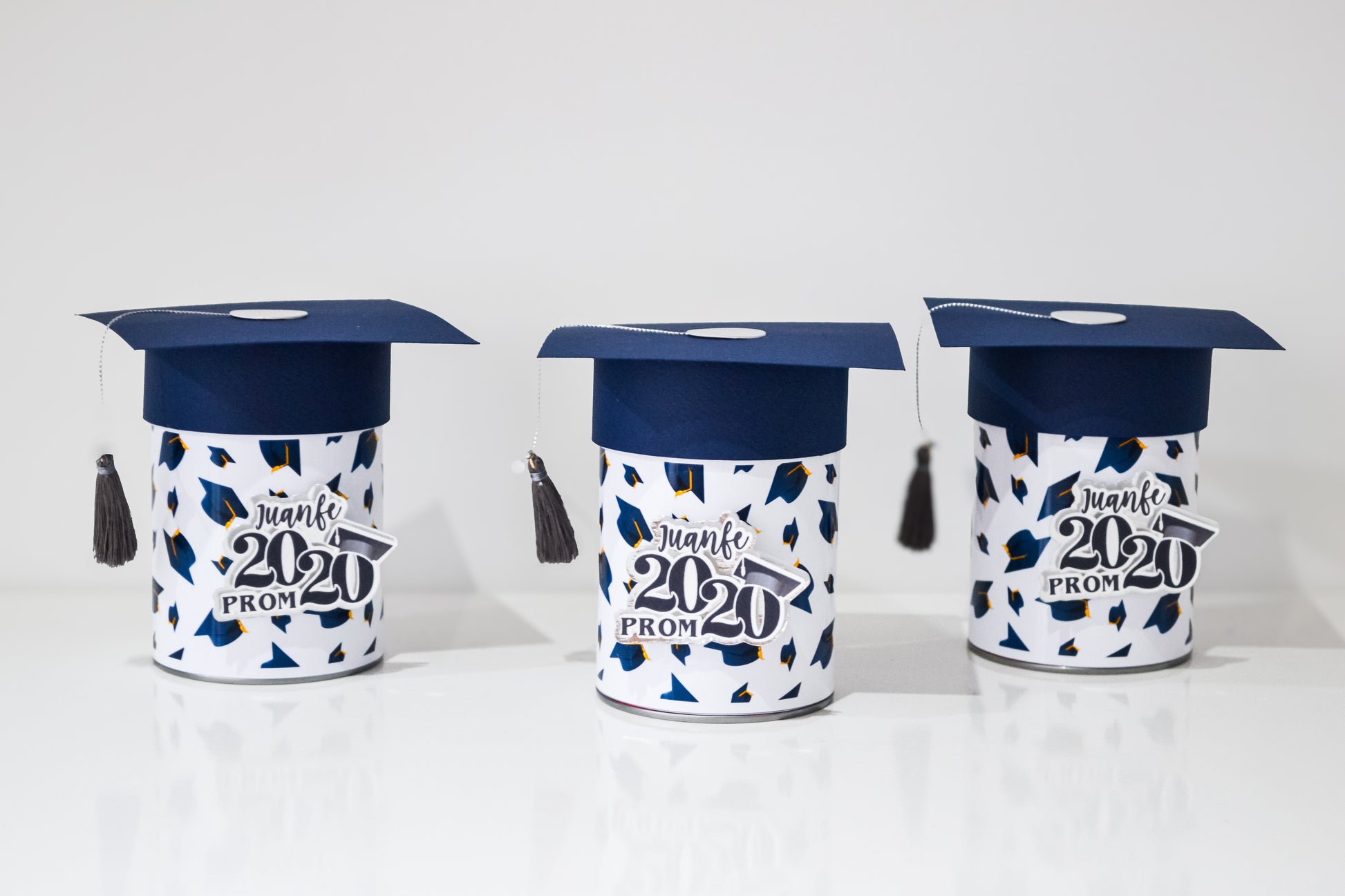 Celebrate grads in any grade with custom snack can favors—a fun, ready-to-display treat for your party table.