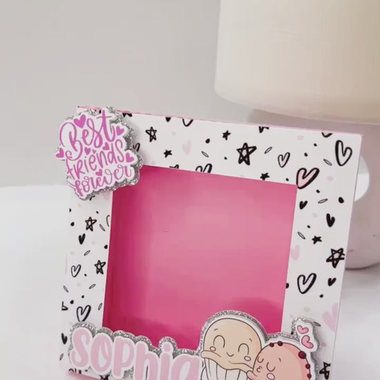 Celebrate friendship with our handmade Valentines photo frame. Personalized with your bestie’s name, it makes a thoughtful keepsake gift or party favor.