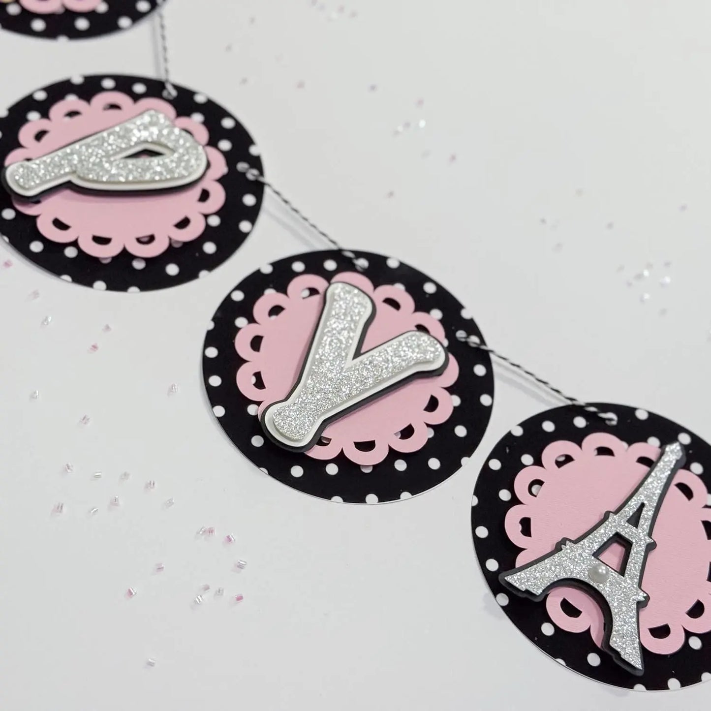 Paris Eiffel Tower Birthday Banner – Pink & Black Party Decorations