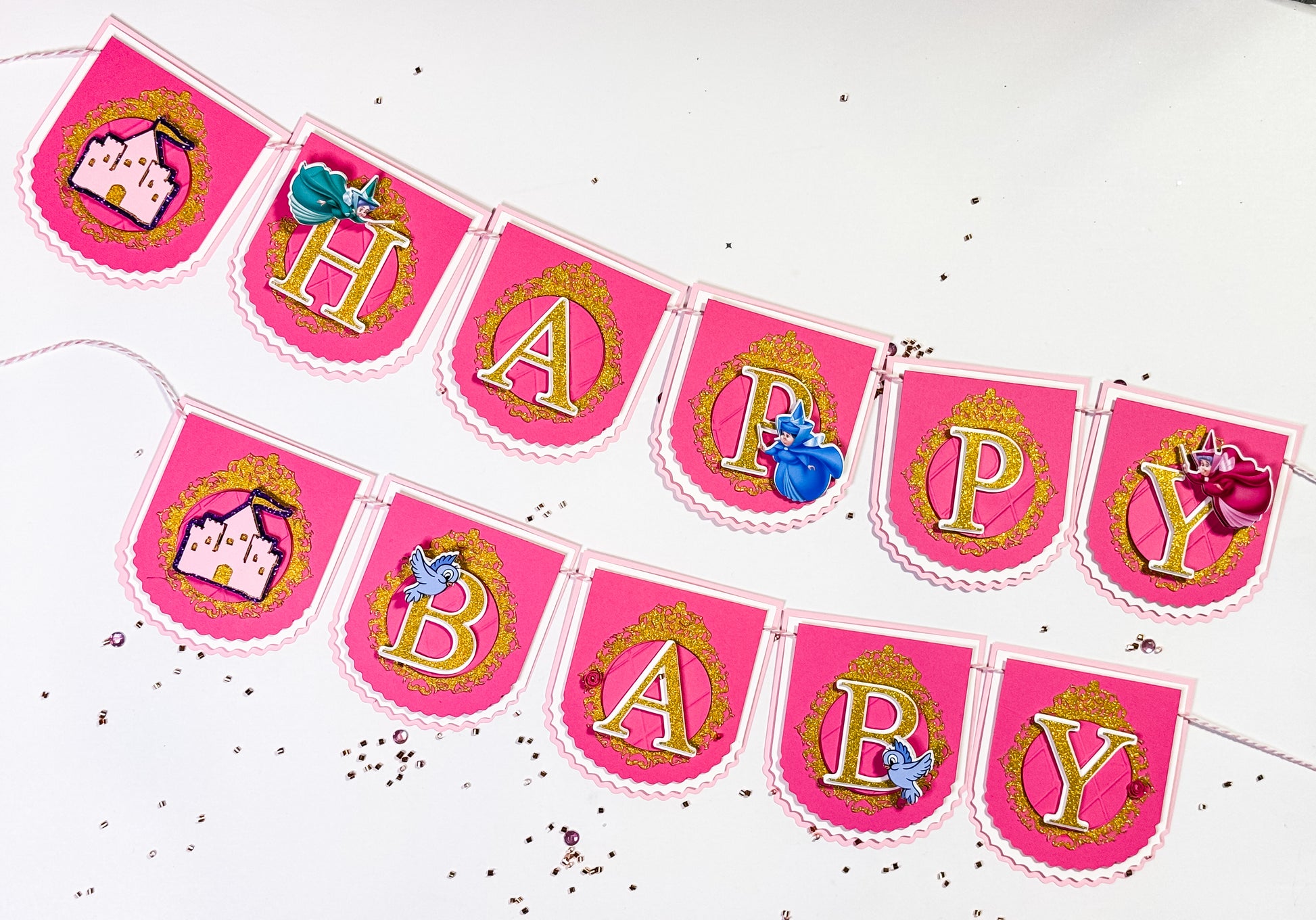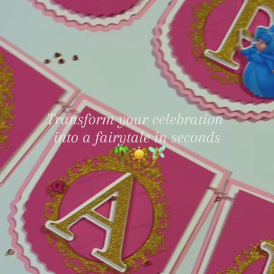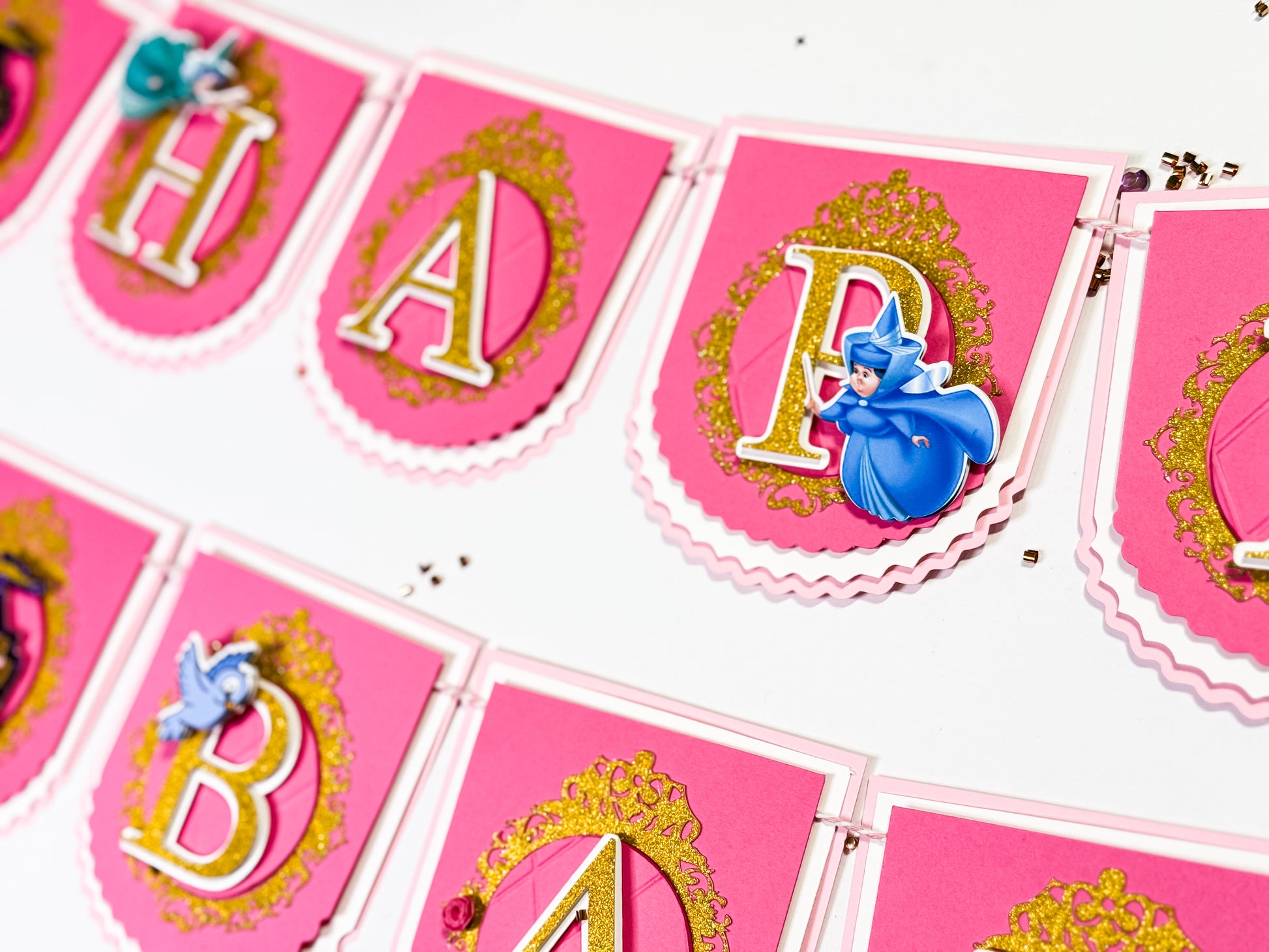 Sleeping Beauty Birthday Banner – Pink & Gold Princess Party Garland